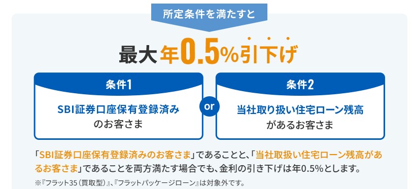 まずローン利用者がSBI証券の口座を保有していると「金利が年0.5%引き下げ」という特典があります。